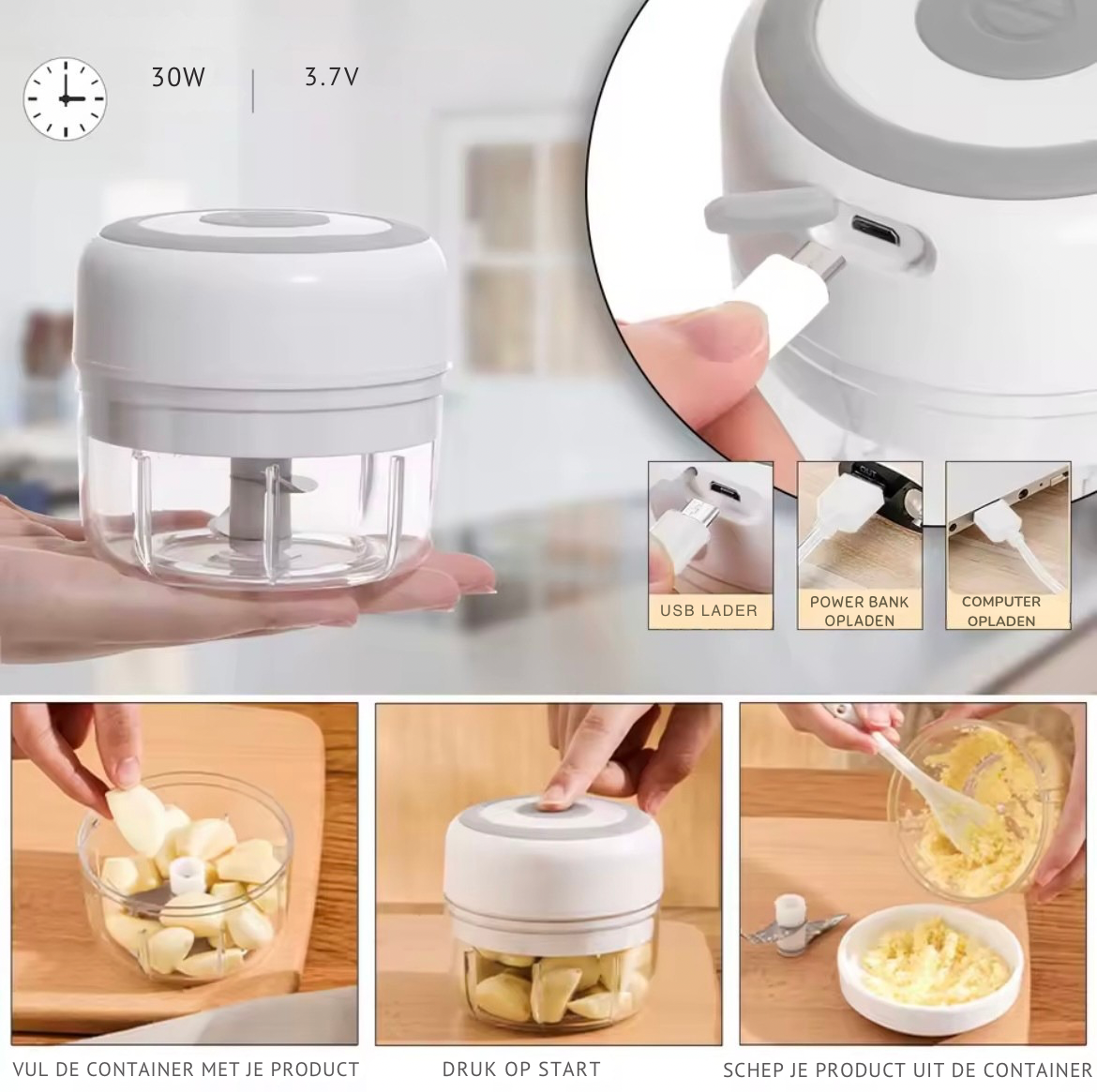 Ontdek de slimme keukenhulp die koken eenvoudiger en leuker maakt. Dit compacte en krachtige apparaat hakt, mengt en maalt ingrediënten in enkele seconden, zonder het gedoe van traditionele messen of snijplanken.